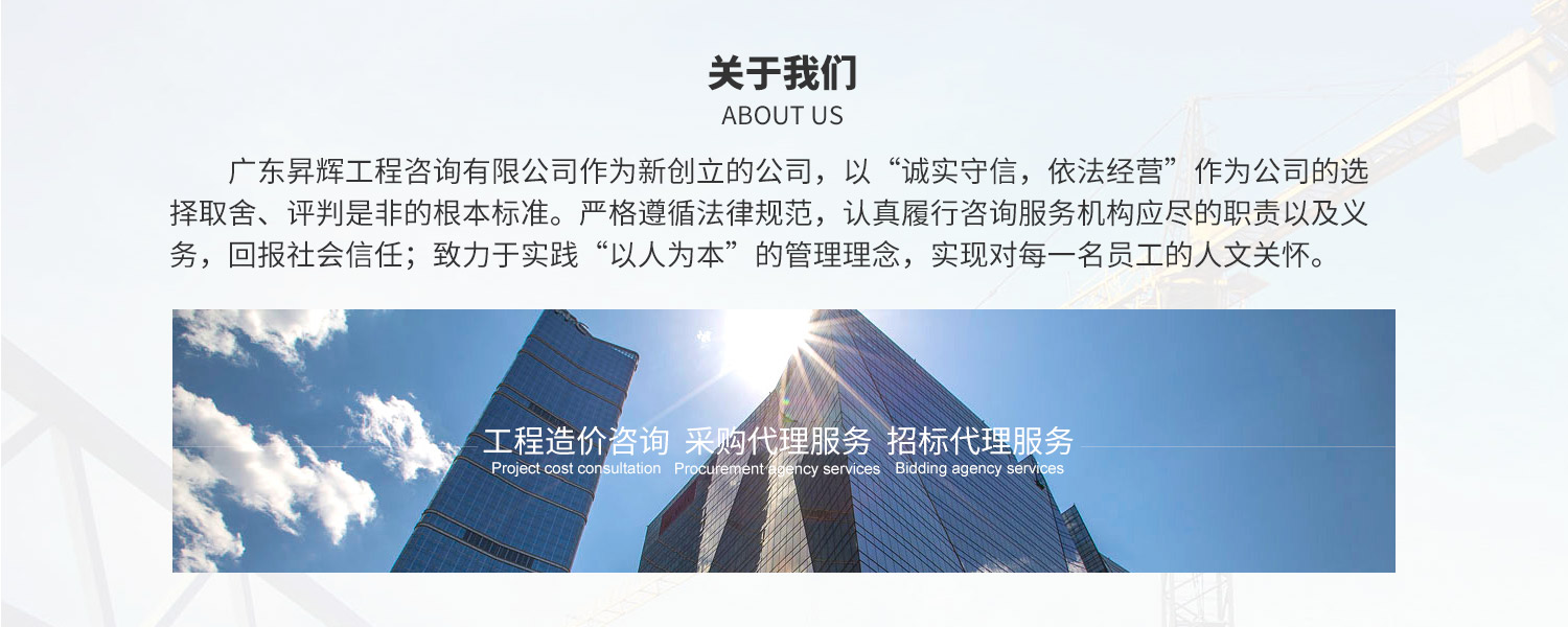 广东昇辉工程咨询有限公司网站 正式上线! 广东昇辉工程咨询有限公司作为新创立的公司,以“诚实守信,依法经营”作为公司的选择取舍、评判是非的根本标准。 严格遵循法律规范,认真履行咨询服务机构应尽的职责与义务,回报社会信任;致力于实践“以人为本”的管理理念,实现对每一名员工的人文关怀。